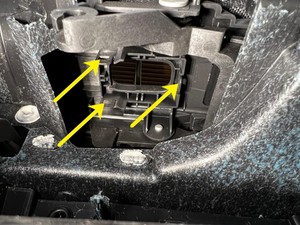 - 小心松开用于将副驾位车窗开关固定到右前车门饰板上的锁片(3 个),然后从饰板上取下开关