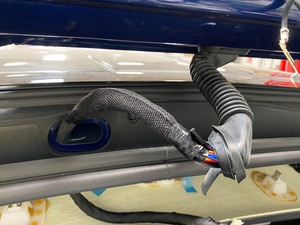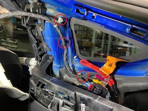 - 将掀背车门线束安装到车辆上,然后将线束索环安装到车身上。