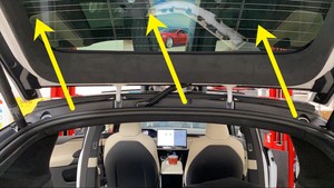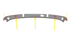 - 松开用于将中间掀背车门槽饰件固定到车身上的卡子(4 个)和双面胶带( 5 个),然后将饰件从车辆上拆下。