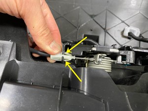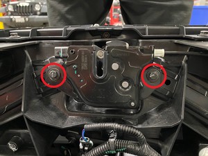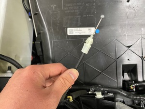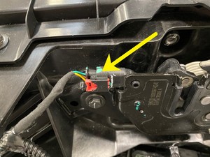断开双拉单传动装置前备箱盖闩锁线束电气连接器。