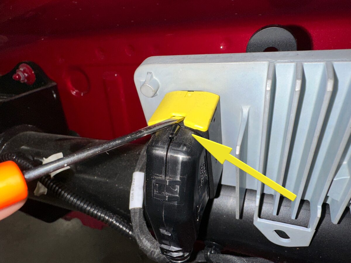 注2x connectors, 1st release yellow connector tab, 2nd simultaneously pull tab up and connector outwards