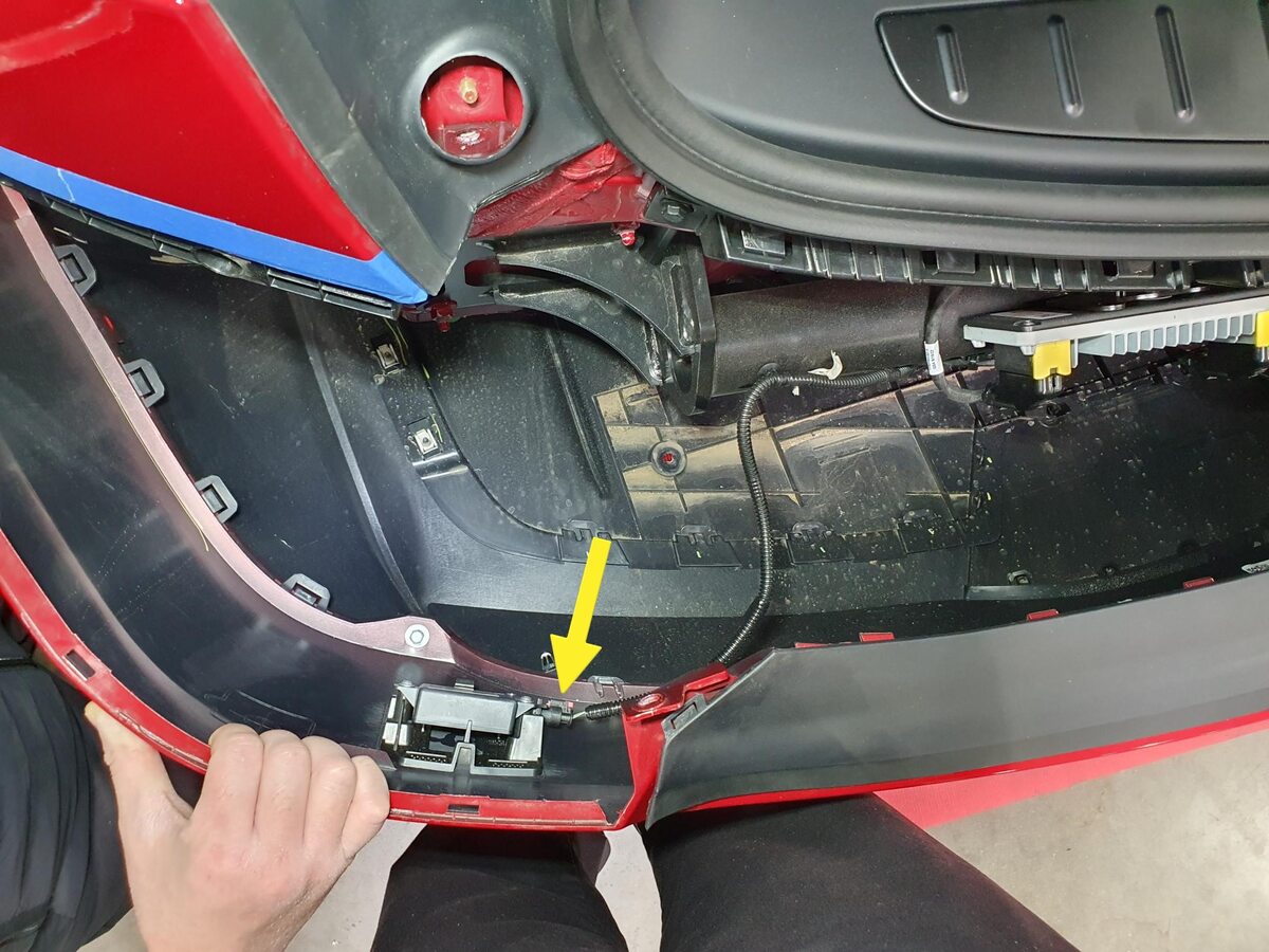 注1x bolts, 10mm, 4 Nm, Lift up on the outer section where upper trough and lower trough meet, Be cautious not to remove double sided tape, This will allow access to the bolt without fully removing trim