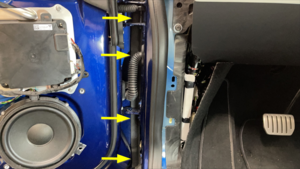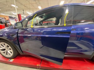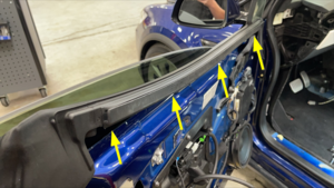 - 安装左前车门外密封条。