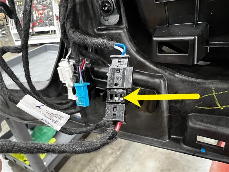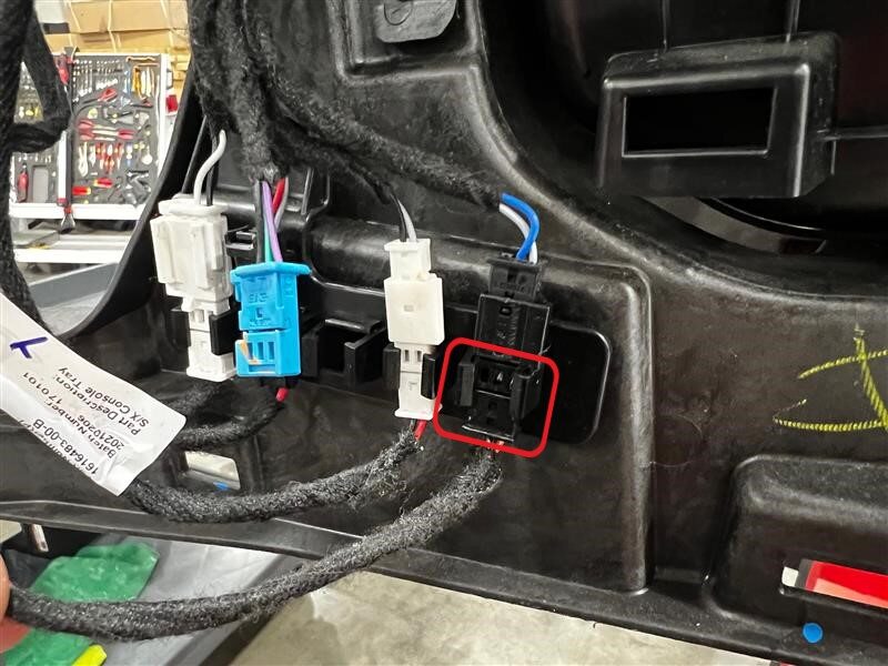 - Release the tabs (x3) that attach the center console lid switch harness to the 1st row center console assembly, and then remove the tape that attaches the switch harness to the harness bundle.