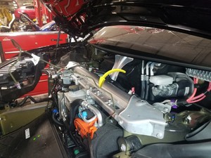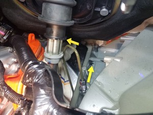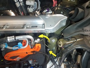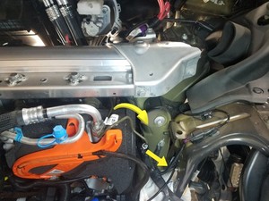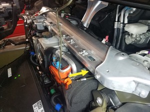 - 将制动管的前端引导到空调压缩机上方,然后放置制动管,以便安装。