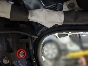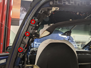 拆下将左侧 B 柱上部门框硬盖板支架固定到车辆上的螺栓。