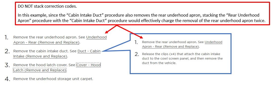 为防止 FRT 时间产生多余和错误账单,请勿将从属程序的校正修理代码 FRT 单独添加到顶级程序的校正修理代码 FRT。相反,只对顶级校正修理代码 FRT 开具账单。