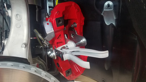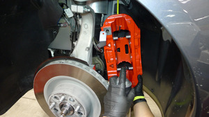 - 使用卡钳扩张器套件或类似的工具,将活塞轻推回前制动钳中。
