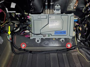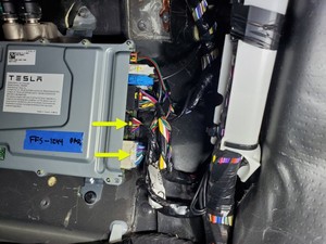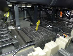 2 个连接器;先固定好紧急响应回路 (FRL),然后将低压电池放置在连接处,再向内推动黑色连接器锁以进行固定,低压电池完全就位后,紧固上部锁片