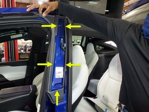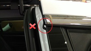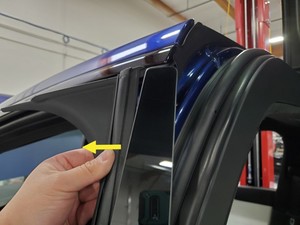 沿左侧 B 柱饰板将左前门密封条安装到位