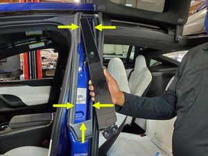安装左侧 C 柱上部饰板