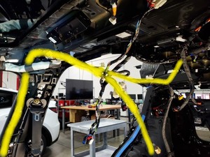 调整座椅位置,以便能够着座椅底部下方,然后将左侧车身线束连接到座椅控制器上