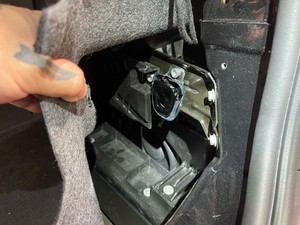 拆下中控台右侧毡毯