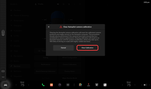 操作如下:center display > Controls > Service > Camera Calibration,选择 Clear Calibration。确认校准成功清除。请等待提示自动消失后再继续后续操作