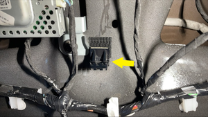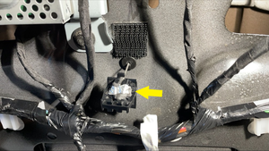 - 拆下一小部分丁基橡胶贴片,松开锁片和 Velcro 绑带,然后将掀背车门紧急解锁把手从掀背车门上松开。