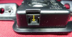 将中控台后脚部空间照明灯放入照明灯总成,然后固定将照明灯连接到总成上的锁片(2 个)。