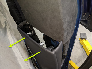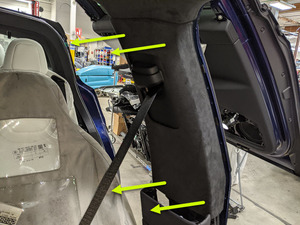 - 松开将左侧下部 B 柱饰件上部分固定到左侧上部 B 柱的卡子(5 个)。