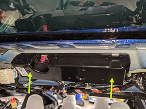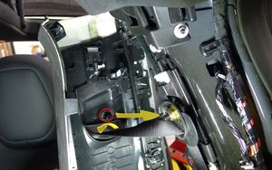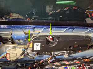 - 松开将左侧上部 B 柱饰件固定在 B 柱上的卡子(3 个)和磁铁(2 个),然后断开左侧鹰翼门按钮的电气连接器。