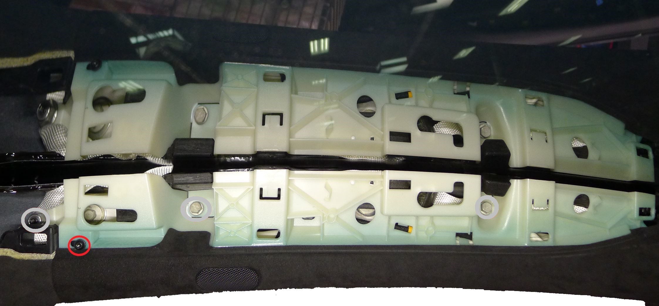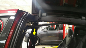 - 松开将左侧上部 A 柱饰件固定到 A 柱的夹子(6 个),然后将饰件放置一旁,以够到顶蓬。