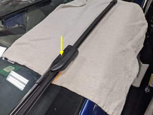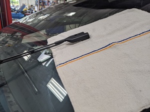 在雨刮器臂下放置一块车间毛巾,以防止损坏风挡玻璃