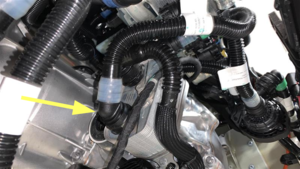 - 松开卡子,断开前驱动单元变流器软管与动力总成冷却液软管的连接,然后立即堵住接头。