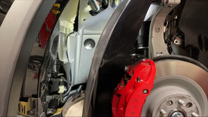 - 松开固定右前轮拱内衬后部的卡子(4 个),向前拉动内衬,露出前驱动单元安装螺栓。