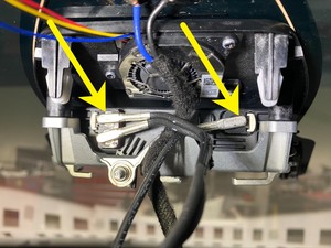- 小心地拉下摄像头上盖,将其从卡子(4 个)上松开,然后放下后视镜线束盖。