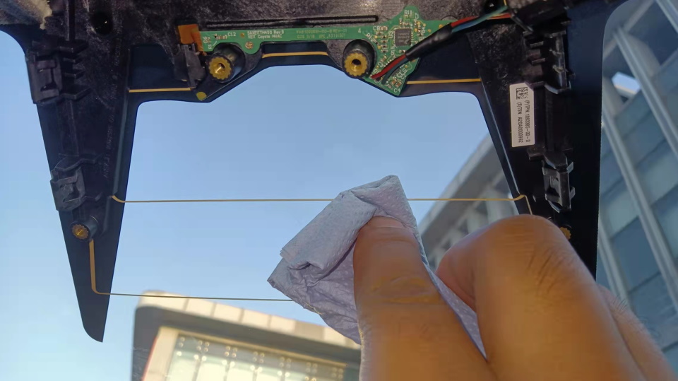 用干净的超细纤维布和玻璃清洁剂清洁内侧挡风玻璃摄像头可视区。待挡风玻璃完全干燥之后再继续。
