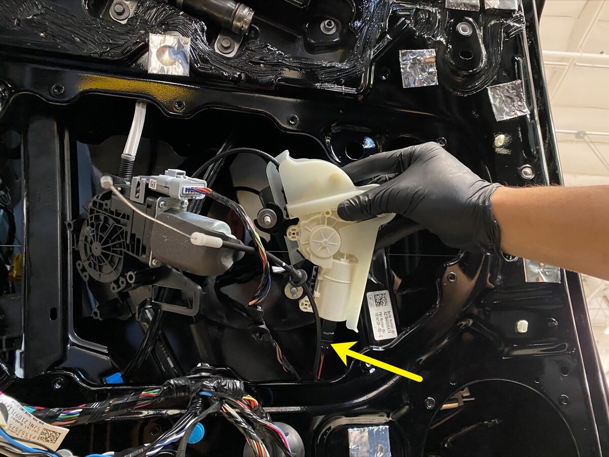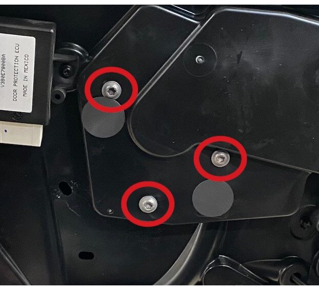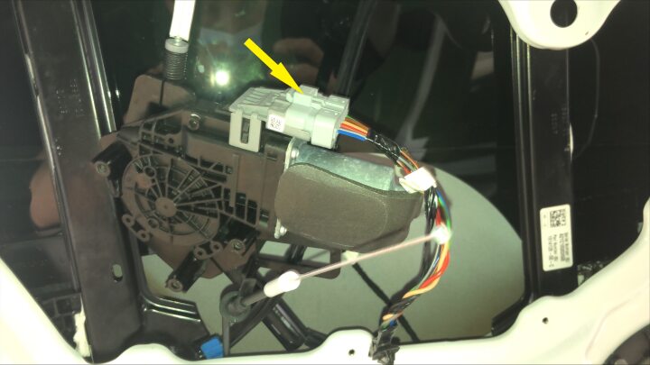 2 个锁片;将左侧封闭板从车门拉离,然后向上提起车窗电机,将其松开