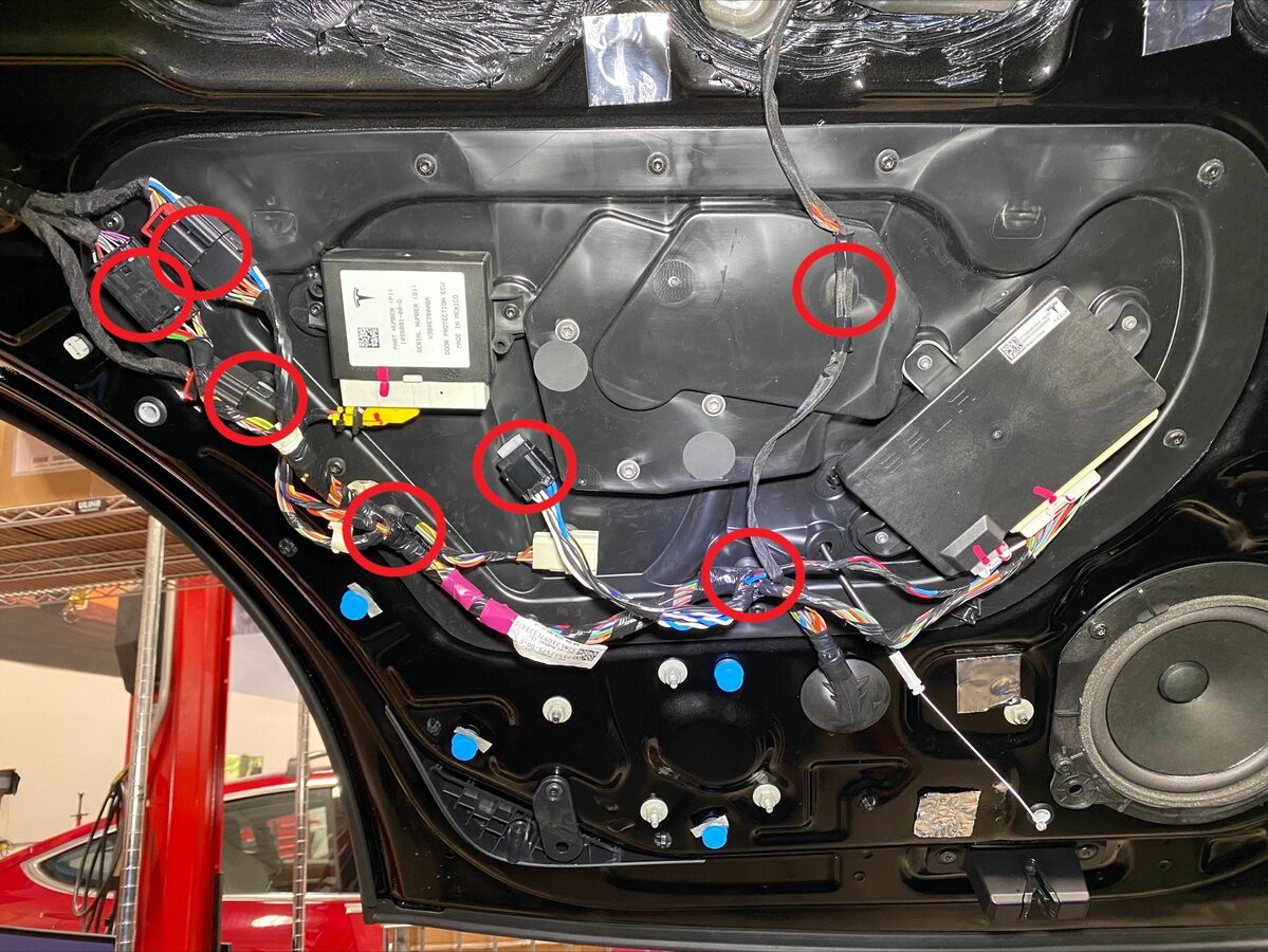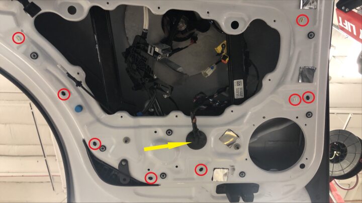 9 个 V 型夹;更换破损的 V 型夹;如有缺失,请补齐。拆除时,注意请勿损坏车门饰板