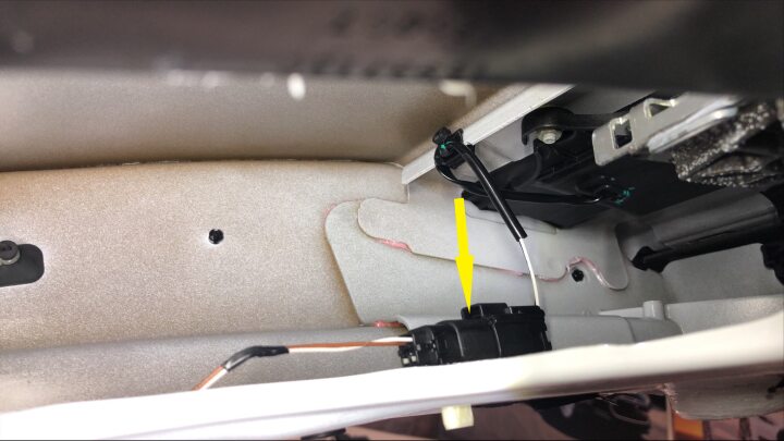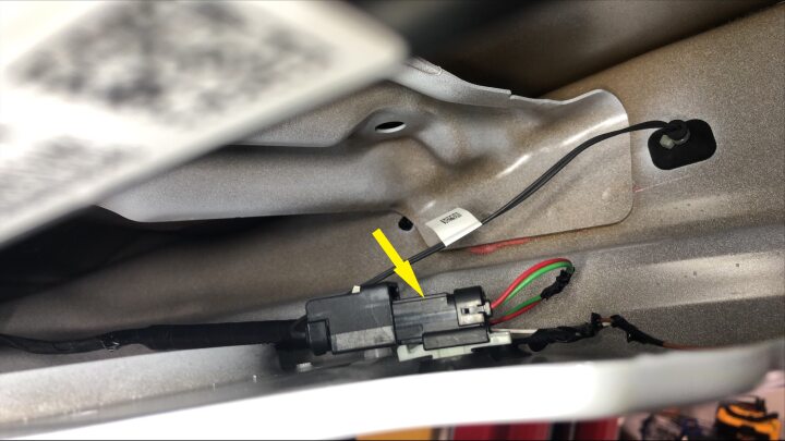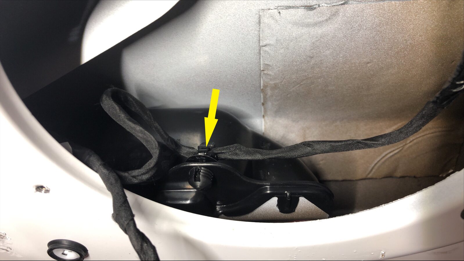 松开将鹰翼门下部线束和连接器固定到左侧封闭板的卡子