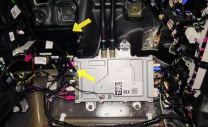 - 压下固定锁片,然后从汽车电脑上断开汽车电脑游戏媒体控制单元 (MCU) 线束