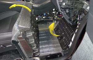 - 将右前座舱毡毯折叠到一旁,以便于检修