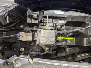 - 拆下将前雷达传感器固定到前端支架的锁片 (x2)。