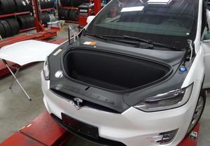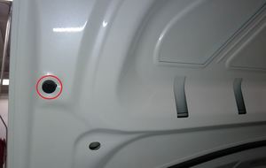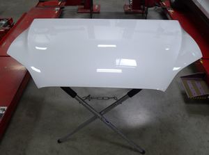 - 在协助下,将前备箱盖从车辆上拆下,然后将其放置在有垫板的平面上。