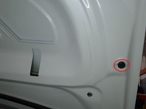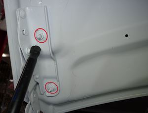 注将前备箱盖每侧的两个螺柱放置到左右铰链处。