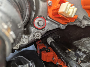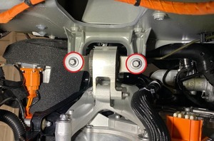 - 拆卸将前驱动单元高压线束支架固定到前驱动单元变流器的螺栓。