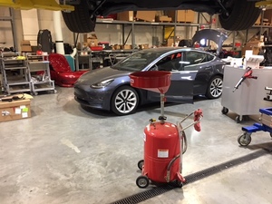 注Tesla 建议在拆卸后换上新的滤油器。凡是存在明显腐蚀或泄漏的滤油器都必须更换。注逆时针旋转,3 牛米 + 135 度;将机油排出。