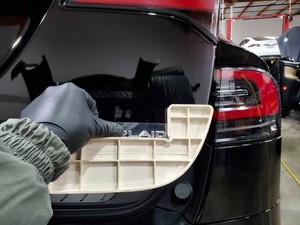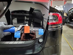 使用接缝滚轮按压每个字母,使其完全贴紧到掀背车门上,然后撕掉徽标上的保护膜。