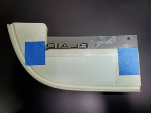 如有必要,将未剥离背胶膜的新的格子字母徽标安装到徽标定位工具上,然后检查装配情况。