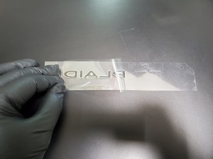 撕掉新的格子字母徽标上的背胶膜,然后将徽标安装到徽标对齐工具上。