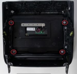 将中控台气浪盖支架放置到气浪帽总成上,然后安装将支架固定到总成上的螺钉(4 个)。
