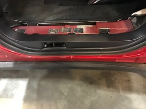 - 安装左后门框硬盖板饰板。请参阅 门框硬盖板饰板 - 后 - LH(拆卸和更换)。