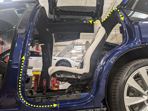 - 拆下左侧鹰翼门主要支柱罩(2 个)。