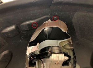 - 拆下将左侧前轮整流罩固定到左侧前轮拱内衬上的卡子。