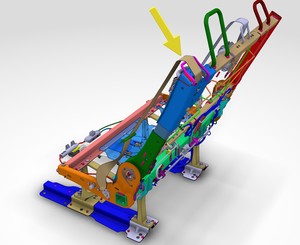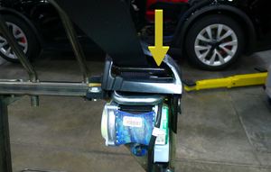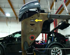 将左侧第二排安全带卷收器放入座椅总成,将安全带从导件上方通过并穿过罩子,然后安装一个新的螺栓,将卷收器固定在座椅总成上。