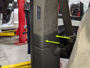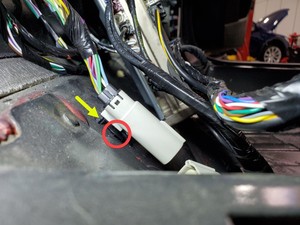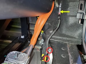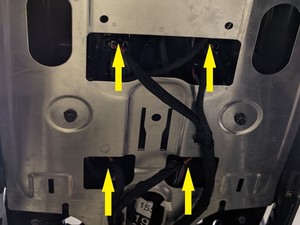 调整座椅位置,以便能接触到座椅底部下方,然后从座椅控制器上断开右侧车身线束。