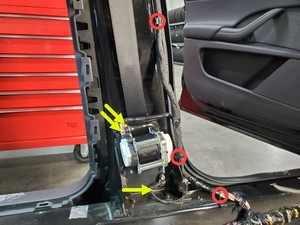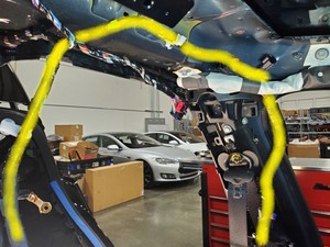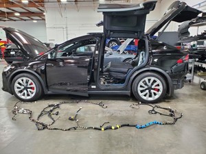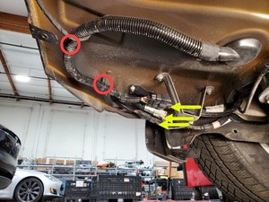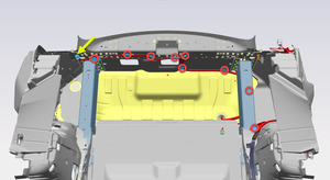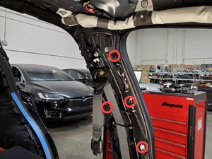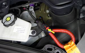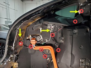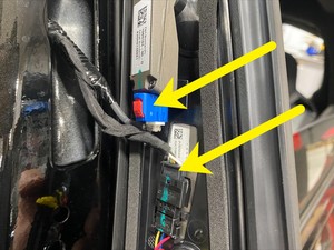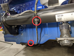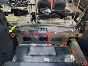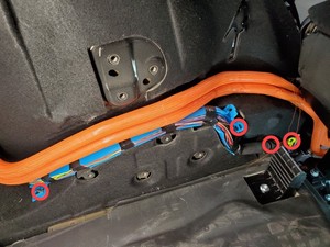 对高压部件进行作业时,务必佩戴 PPE(高压手套、护目镜),测量 B+ 至 B-、B+ 至接地(使用行李箱撞销充当绝缘检查的接地)的电压;如果电压大于 10V,则说明电池组触点开关未断开或熔焊;停止作业并联系服务工程部。