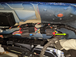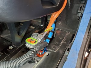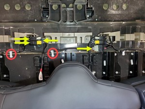 调整座椅位置,以便能够着座椅底部下方,然后将左侧车身线束连接到座椅控制器上