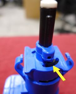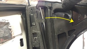 将左侧 B 柱饰板密封条顶部三角形部分紧贴车身固定到位